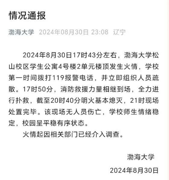 然而,渤海大學(xué)松山校區(qū)在迎新季還未結(jié)束時,就發(fā)生一起火災(zāi)事故,所幸無人傷亡。