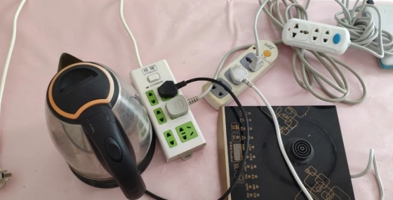 危險行為:將多個插線板串聯(lián)使用,導(dǎo)致電線短路、過載,引發(fā)火災(zāi)。