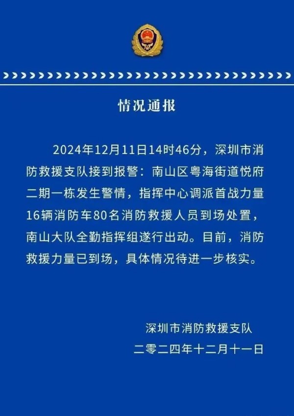 根據(jù)南山區(qū)應(yīng)急管理局16時(shí)許的最新通報(bào),南山區(qū)已啟動(dòng)相關(guān)應(yīng)急預(yù)案,區(qū)應(yīng)急、消防、公安、交警、住建、衛(wèi)健等部門(mén)正在全力開(kāi)展救援處置工作,事故原因等相關(guān)情況正在進(jìn)一步核實(shí)中。
