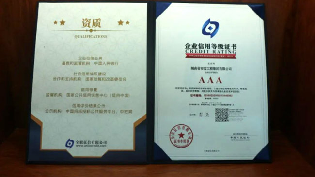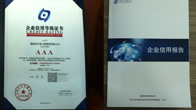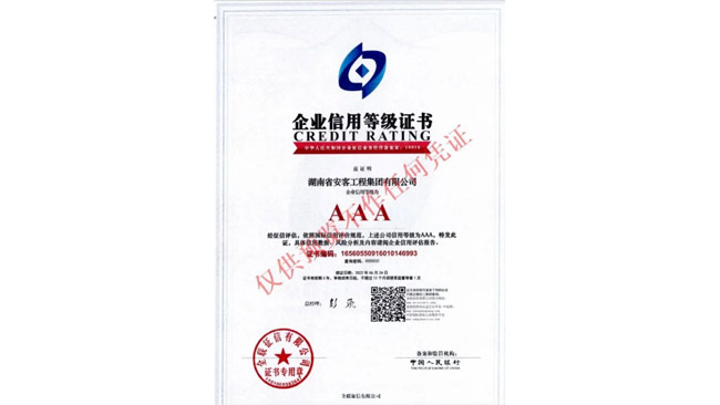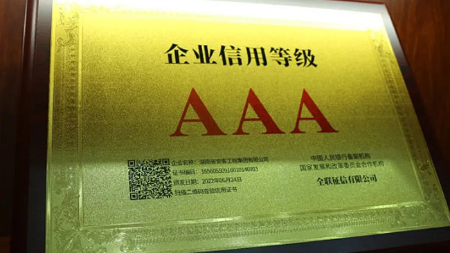 在今年的全國征信評(píng)定活動(dòng)中,湖南省安客工程集團(tuán)有限公司又一次脫穎而出,再度榮冠成為2022年度“企業(yè)信用等級(jí)3A”企業(yè),為集團(tuán)品質(zhì)品牌升級(jí)邁向新的高度,凝聚更多力量,注入更多動(dòng)能。